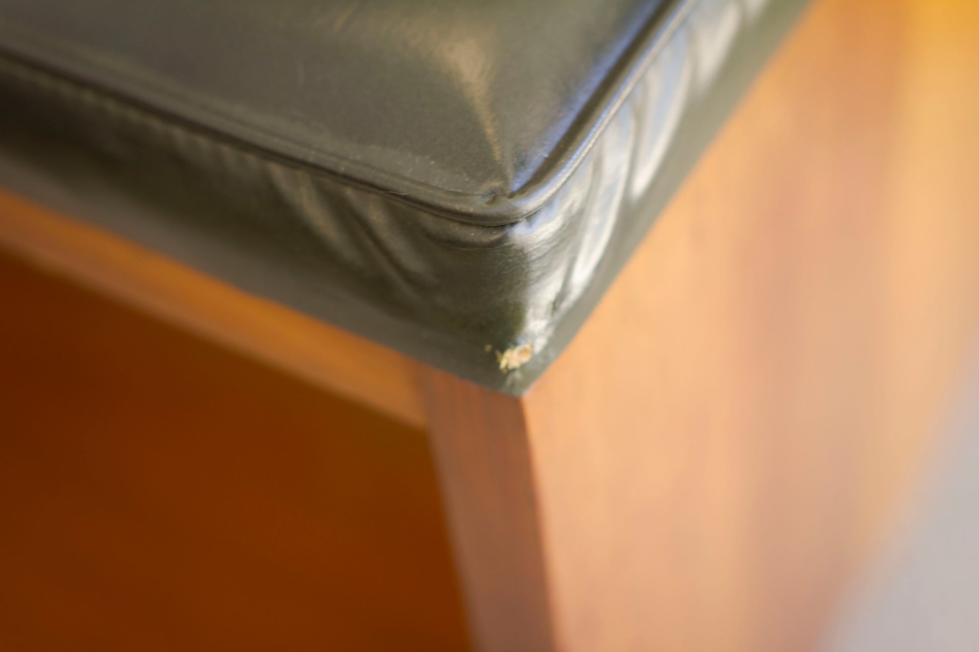 The vinyl on the seat side is in near new condition. there is one small pin prick on one corner (pictured), but apart from that there is no wear, holes or degradation. There is also no fading.