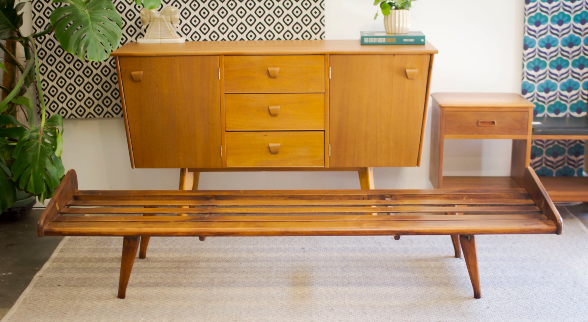 A compact and stylish mid century daybed, with the added bonus of having legs that can fold away.