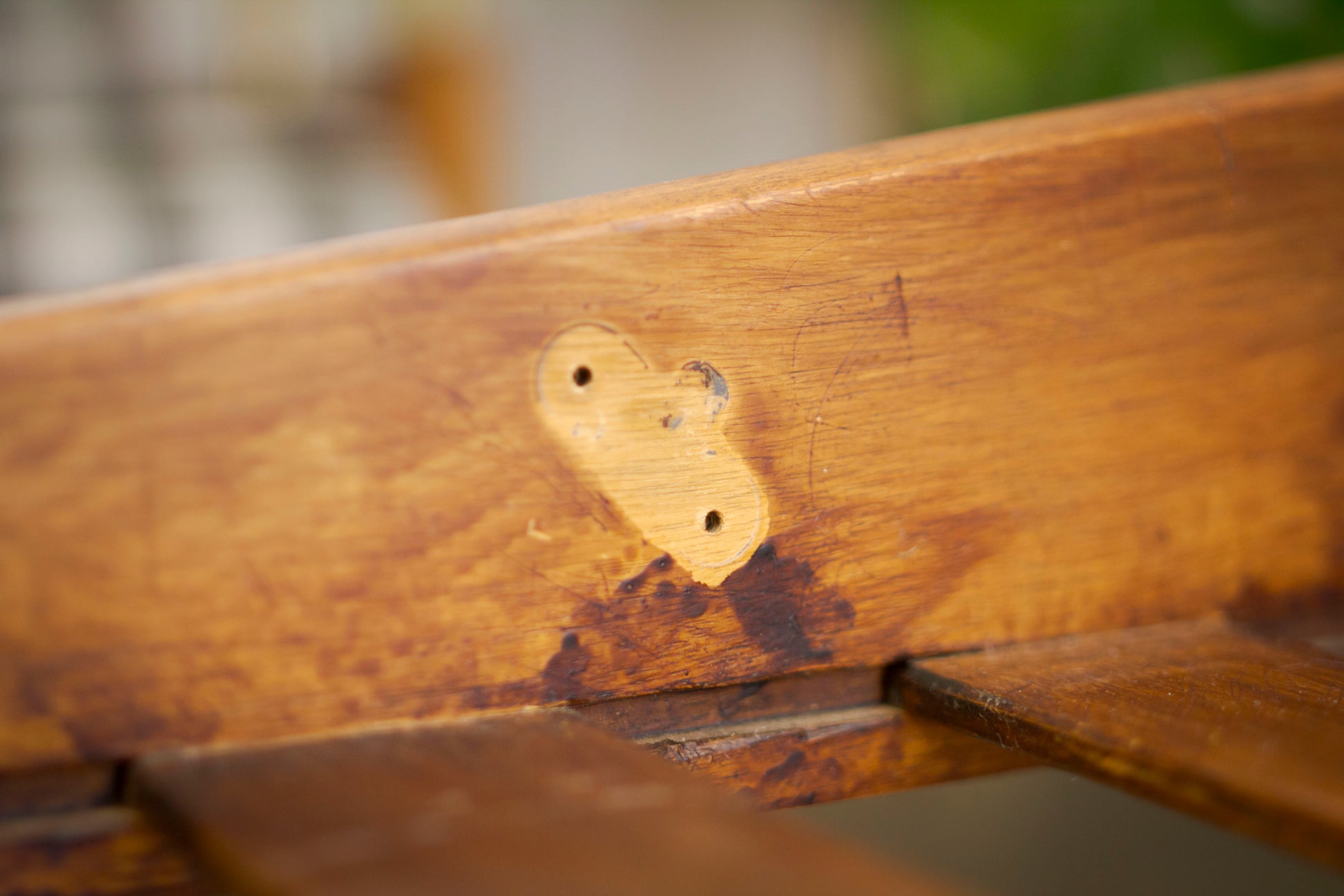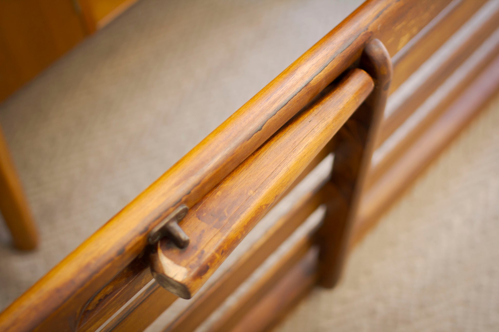 The original wood stain was also applied unevenly, but it's quite charming and makes this a retro piece with a decent history.